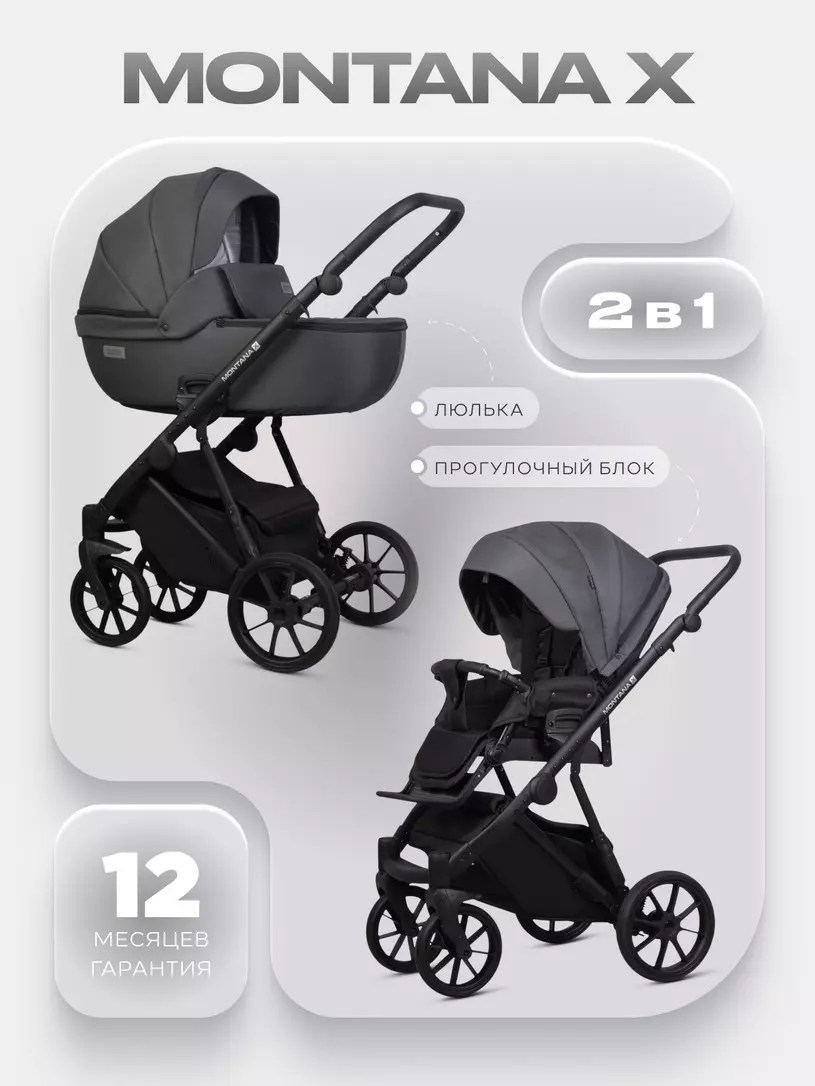 - В комплекте есть всё необходимое: дождевик, москитная сетка и стильная сумка для мамы, которая крепится на карабины.Коляска универсальная 2 в 1 Riko Basic Montana X — это идеальный баланс функциональности, комфорта и безопасности. Если вы ищете детскую коляску 2 в 1, которую можно купить недорого и при этом быть уверенной в её качестве — эта модель станет вашим надёжным выбором.