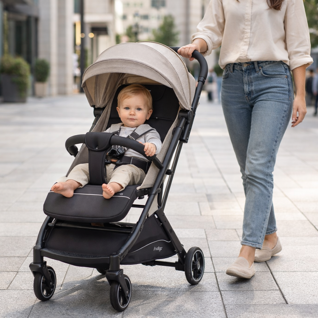 Indigo ONYX - практичная прогулочная коляска для мобильных прогулок и путешествий с ребенком.