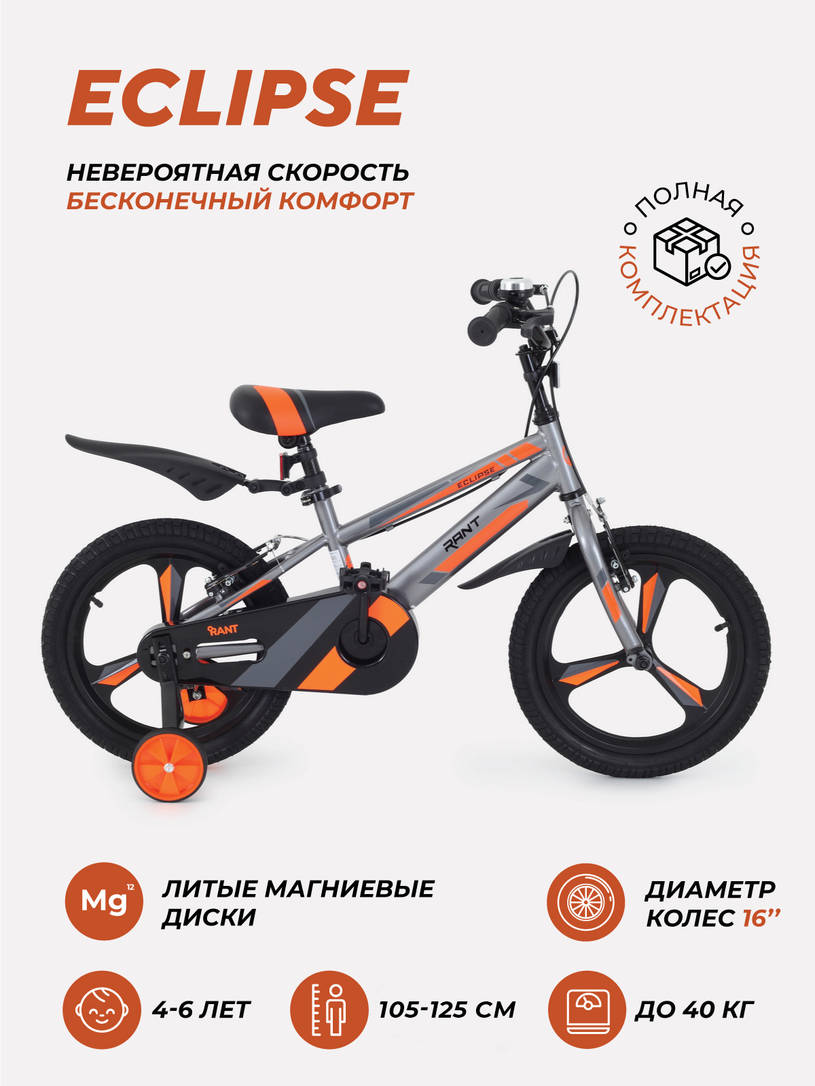 В интернет-магазине КОЛЯСКИ Вы можете купить велосипед 2-х колесный Rant Eclipse 16" серебристый с доставкой по Краснодару и Краснодарскому краю, с официальной гарантией производителя. КОЛЯСКИ - Ваш Любимый Интернет-Магазин Низких Цен!